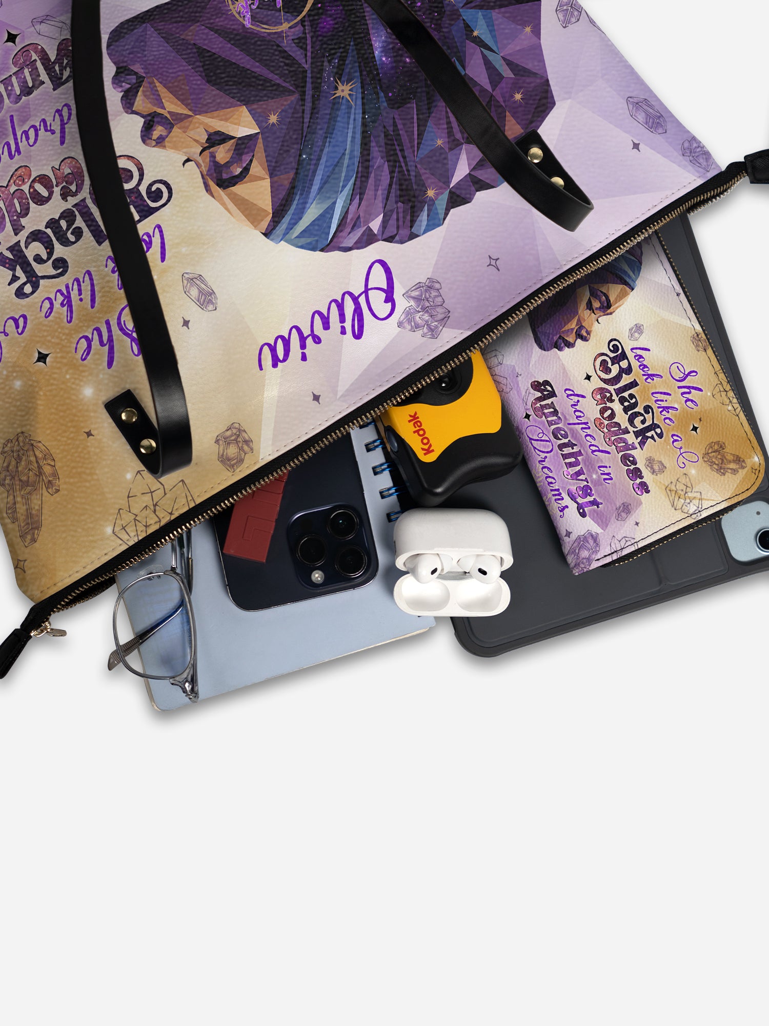 Melaniva “Amethyst Dreams” Leather Totebag — a luminous tribute to the bold, beautiful essence of women of color.