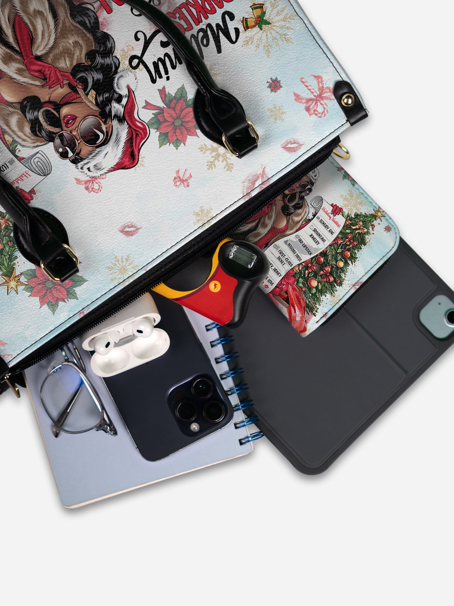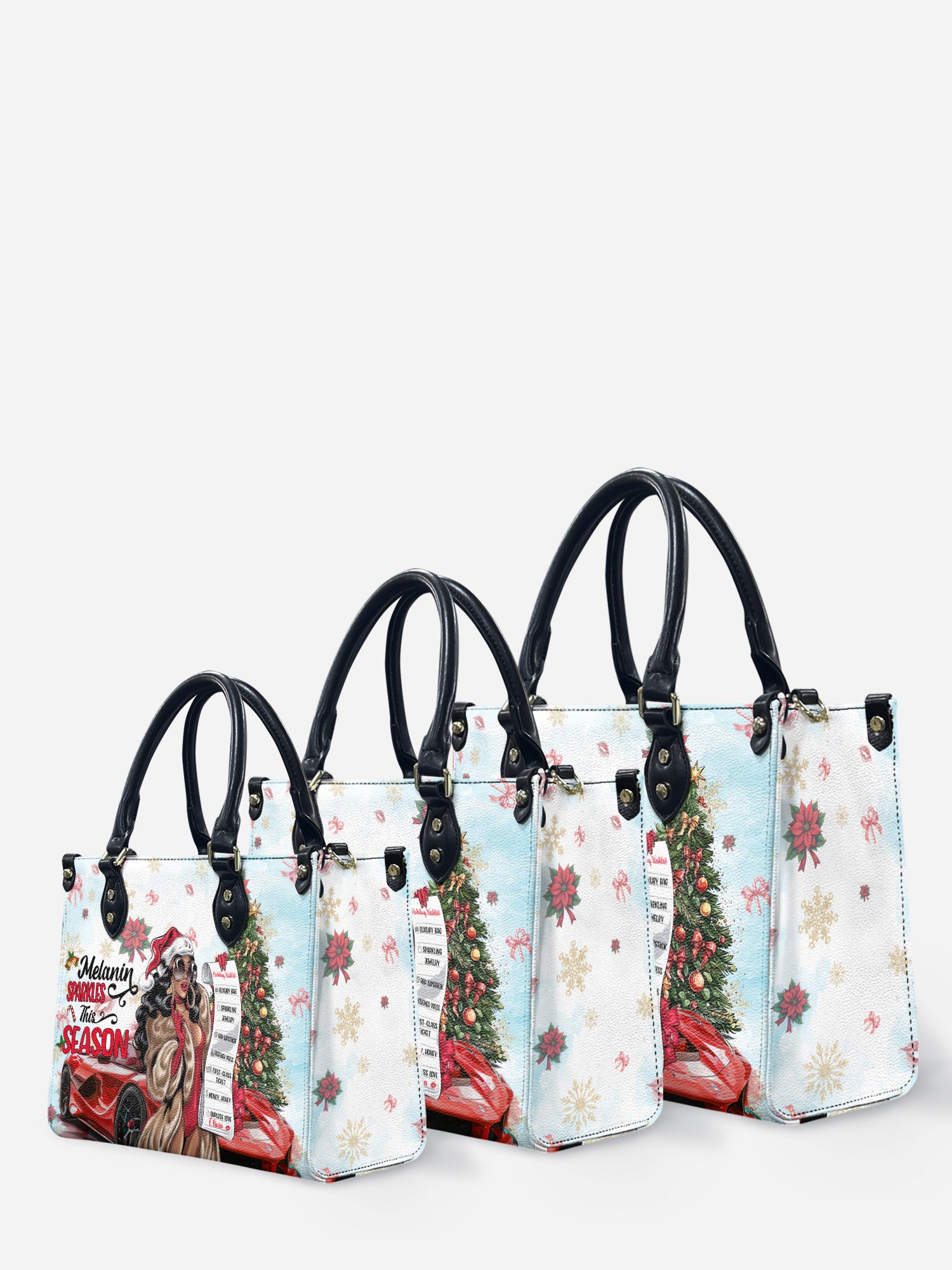 The Melaniva Christmas Dreams Leather Handbag is made to shine with the magic of the season. Playful holiday art meets premium leather design, creating a piece that’s as festive as it is fashionable. Spacious, stylish, and full of cheer, it’s the perfect companion for holiday parties, gift shopping, and every sparkling moment in between.