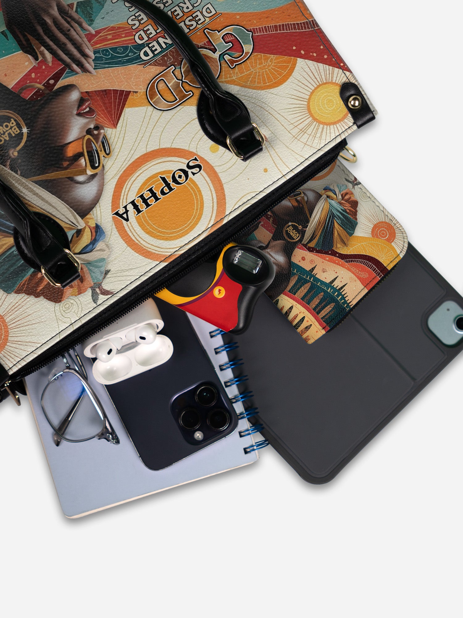 Melaniva “Grace & Strength” Leather Handbag — a soulful celebration of faith, beauty, and resilience.