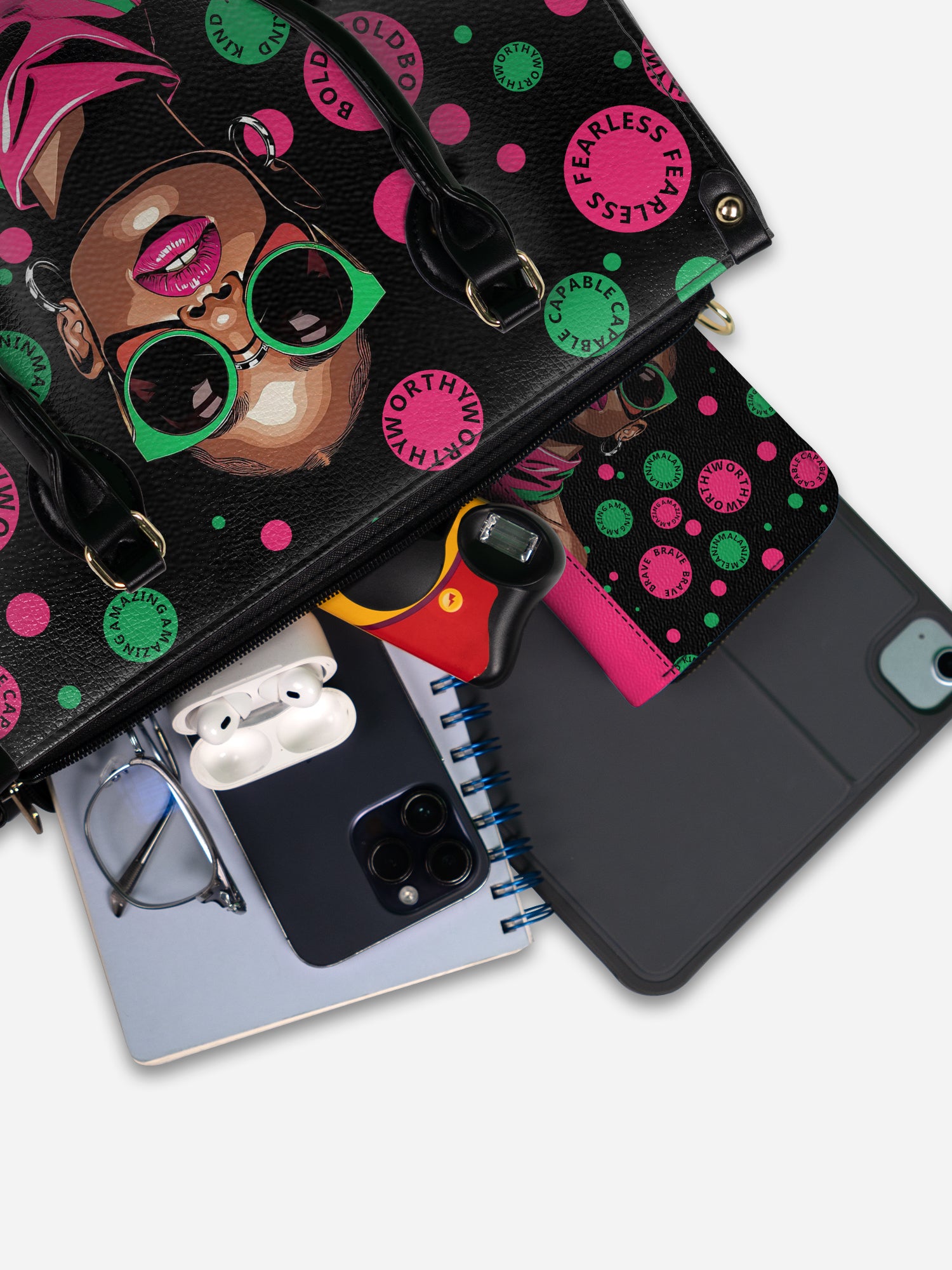 Melaniva “Fearless Beauty Rising” Leather Handbag — a vibrant celebration of power, confidence, and unapologetic style.