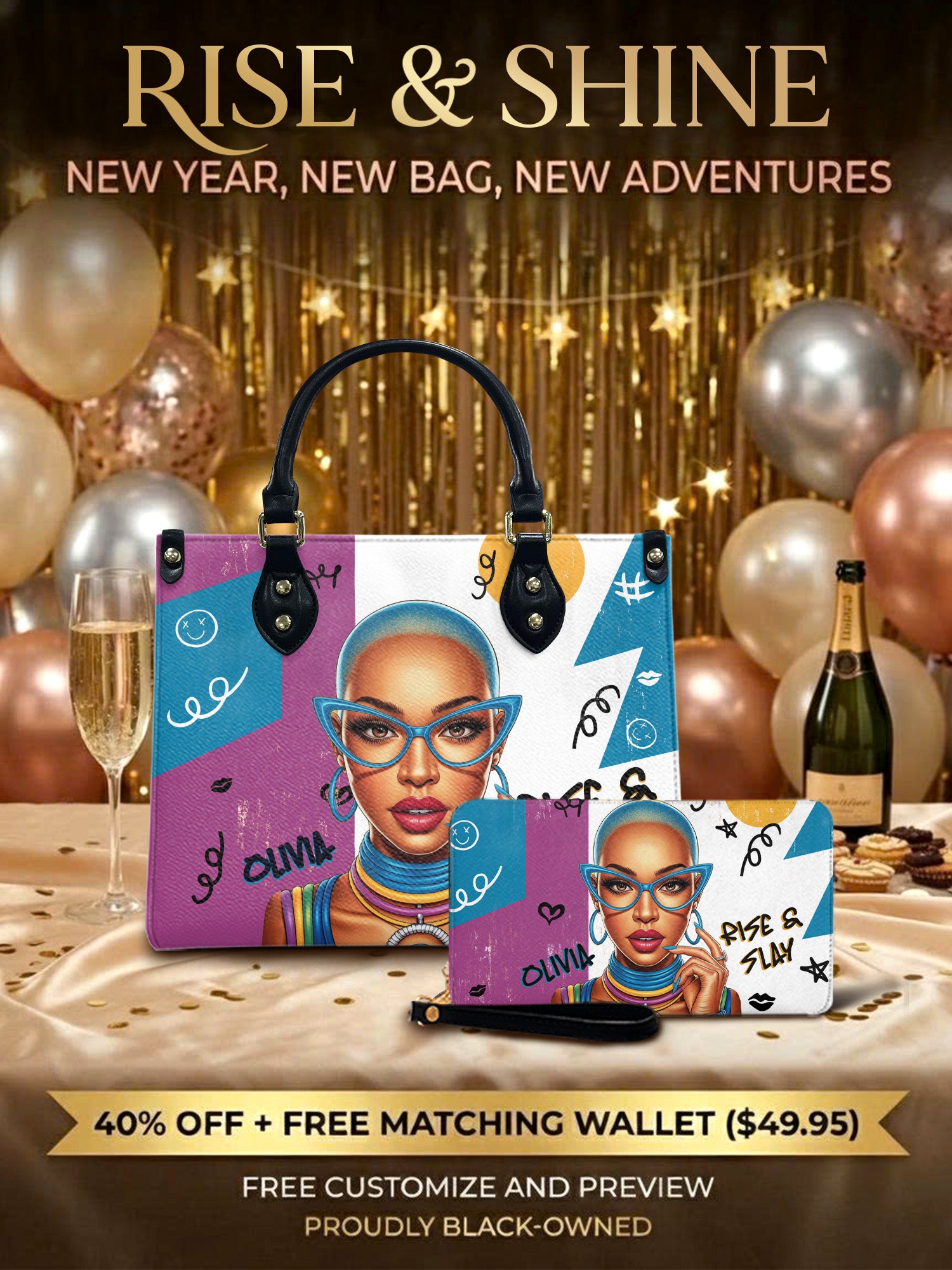 Step out and make a statement with the "Melaniva Rise & Pop" Leather Handbag, a tribute to the bold, artistic spirit of the Black woman. The electric blue and vibrant purple design pops with an energy that is as fearless and creative as your own. Consider this piece the exclamation point to your style, a declaration that you are here to write your own rules.