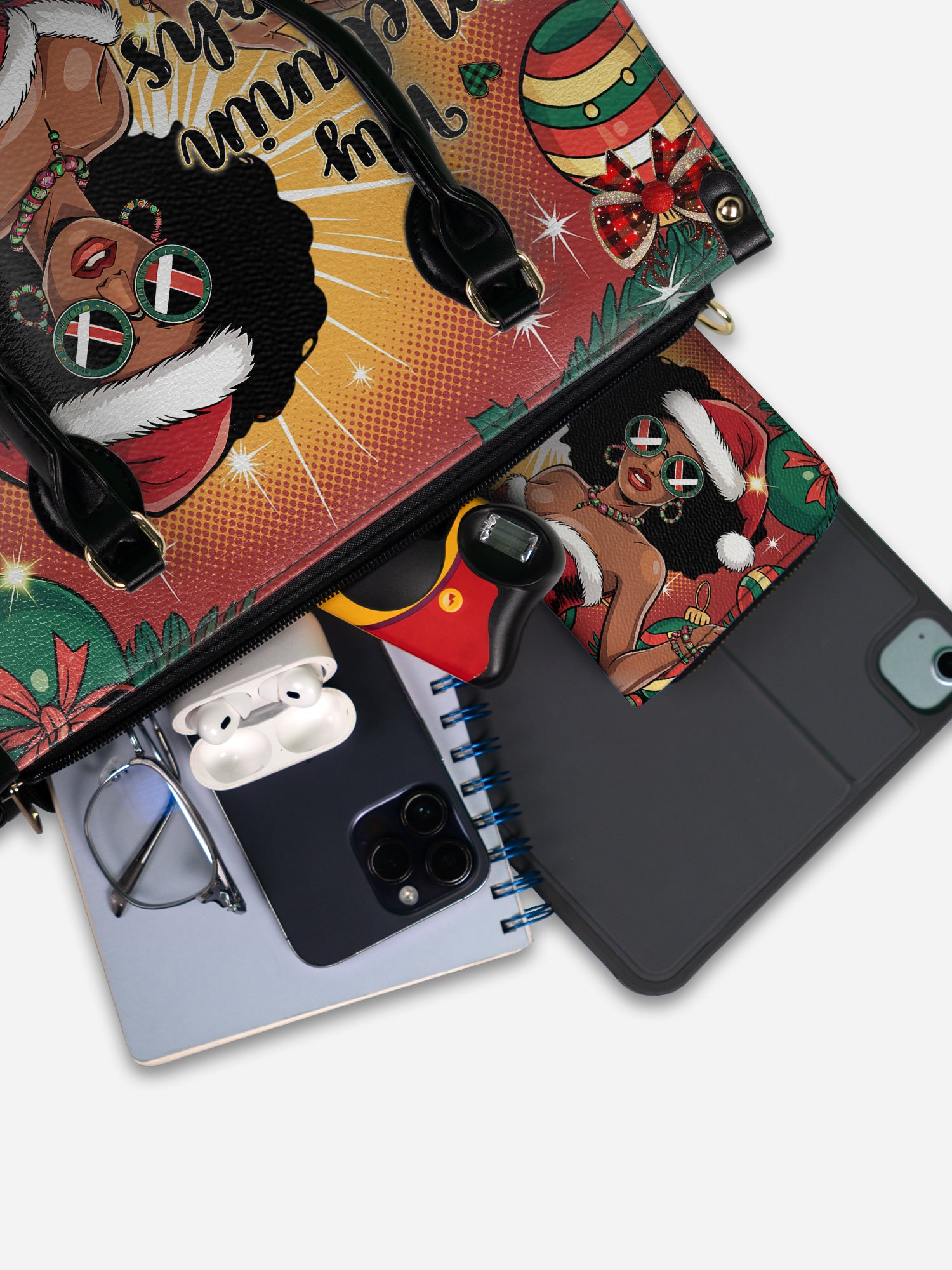 She steps out with sparkle in her eyes and confidence in her stride—because the season is hers to rule. The Melaniva Sleigh Queen Leather Handbag carries the magic of Christmas with bold art, vibrant colors, and a spirit that celebrates melanin beauty all day. More than a bag, it’s a holiday crown, reminding every woman that she’s the queen of her story, sleighing through the season with style, power, and joy.