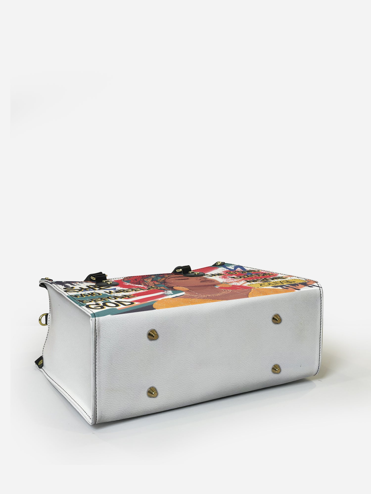 Let your faith be your armor. The Melaniva Stand Fearless Faith handbag is a stunning tribute to the Black woman whose strength is rooted in unshakeable belief. Set against a bold, graffiti-style canvas, the message is a defiant declaration: "She who kneels before God can stand before anyone." It's a beautiful fusion of inner peace and outer strength, celebrating the grace and grit that define you. Carry this masterpiece as your testament that you are fearless, formidable, and forever guided.